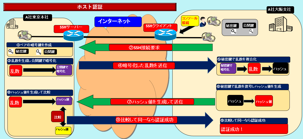 ハッシュ値を受け取ったSSHサーバーは、自身でも乱数からハッシュ値を計算し、同じ値なら認証成功と判断する。