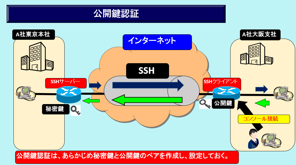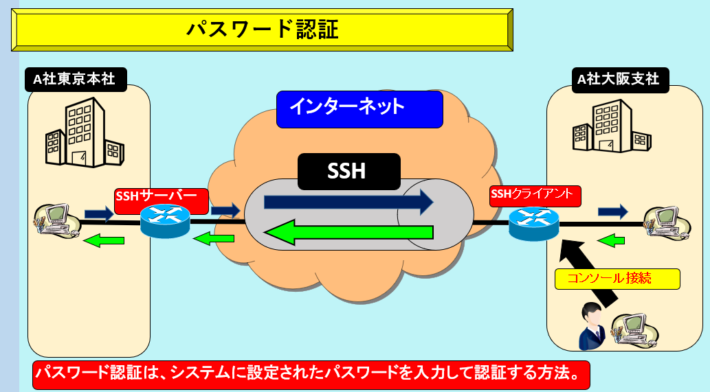 SSH認証はユーザーIDとパスワードを用いる方法(パスワード認証)と、公開鍵方式を利用した認証方法(公開鍵認証)が用意されている。
