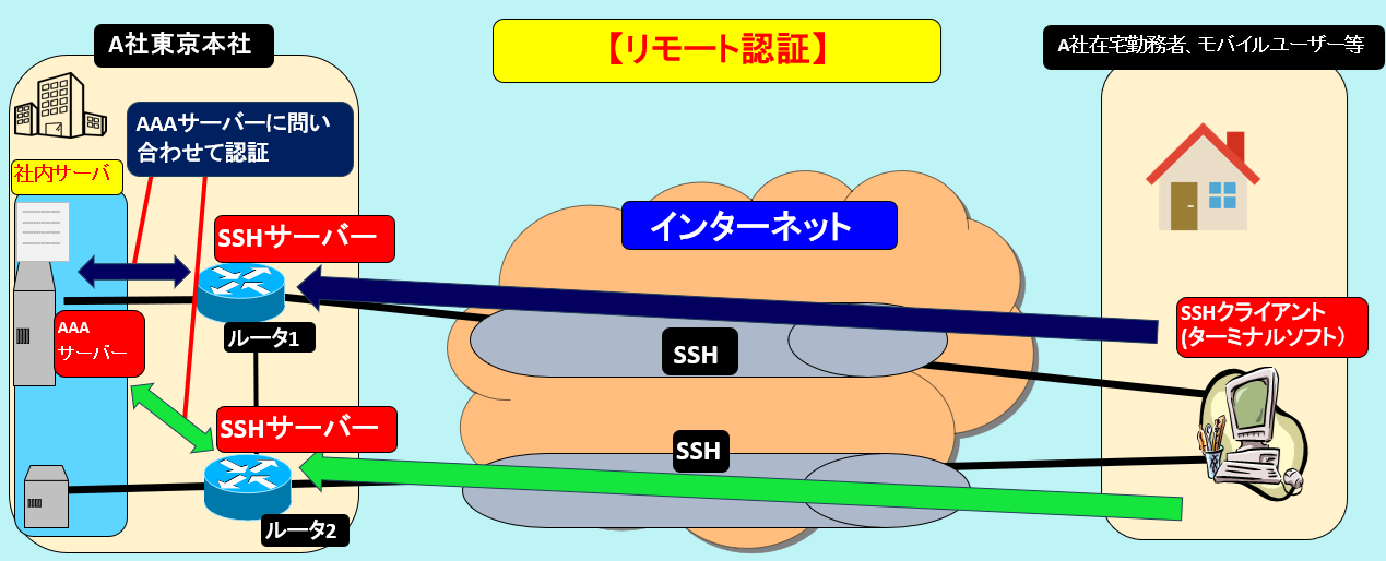 また「AAA」の認証サーバーでユーザー情報を持つ方式を「リモート認証」という。